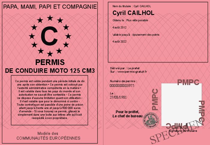 Permis de conduire A(moto lgre)